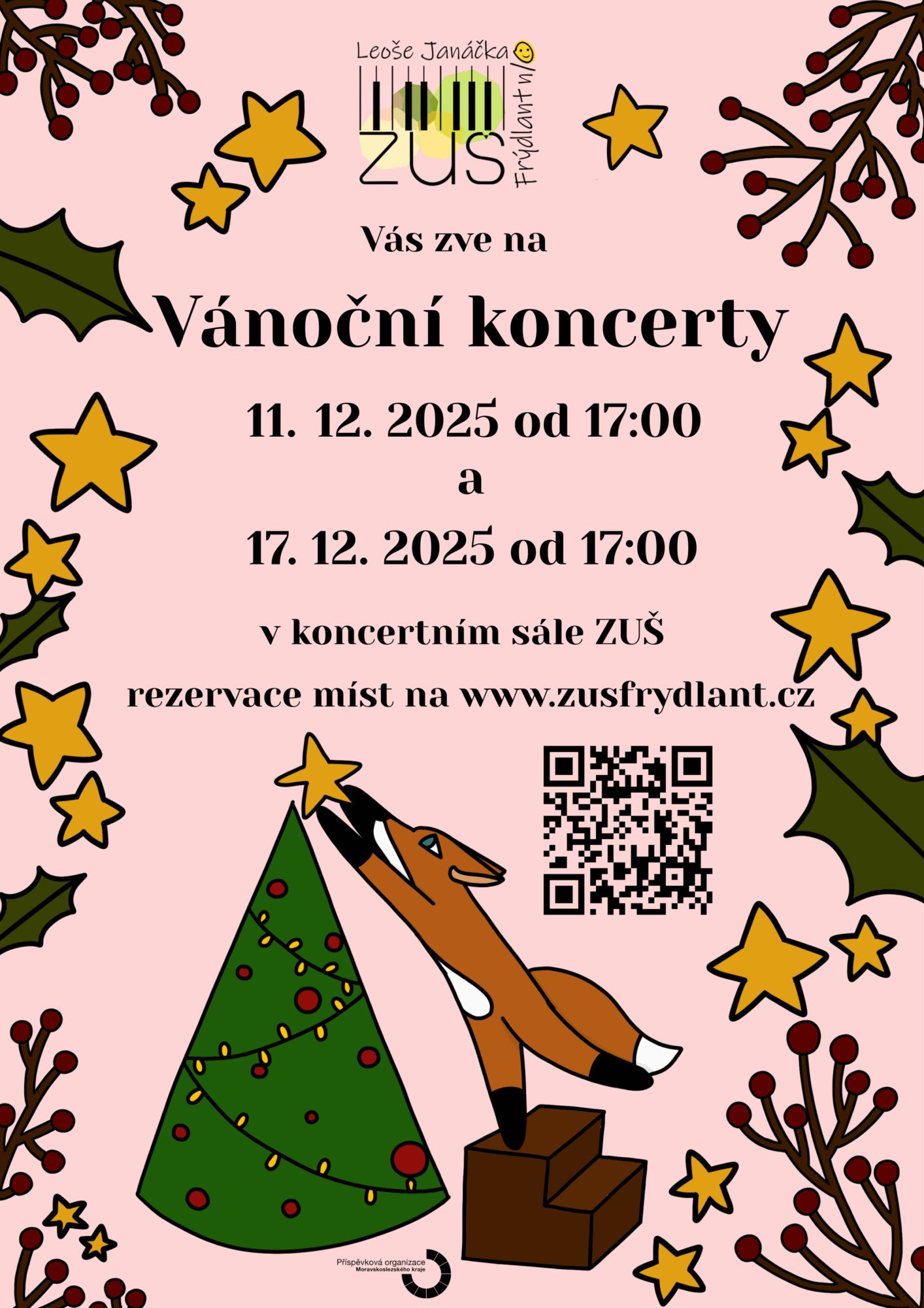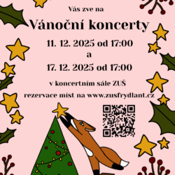 zveme vás srdečně na tradiční vánoční koncerty našich žáků, které se konají 11. a 17. 12. 2025.